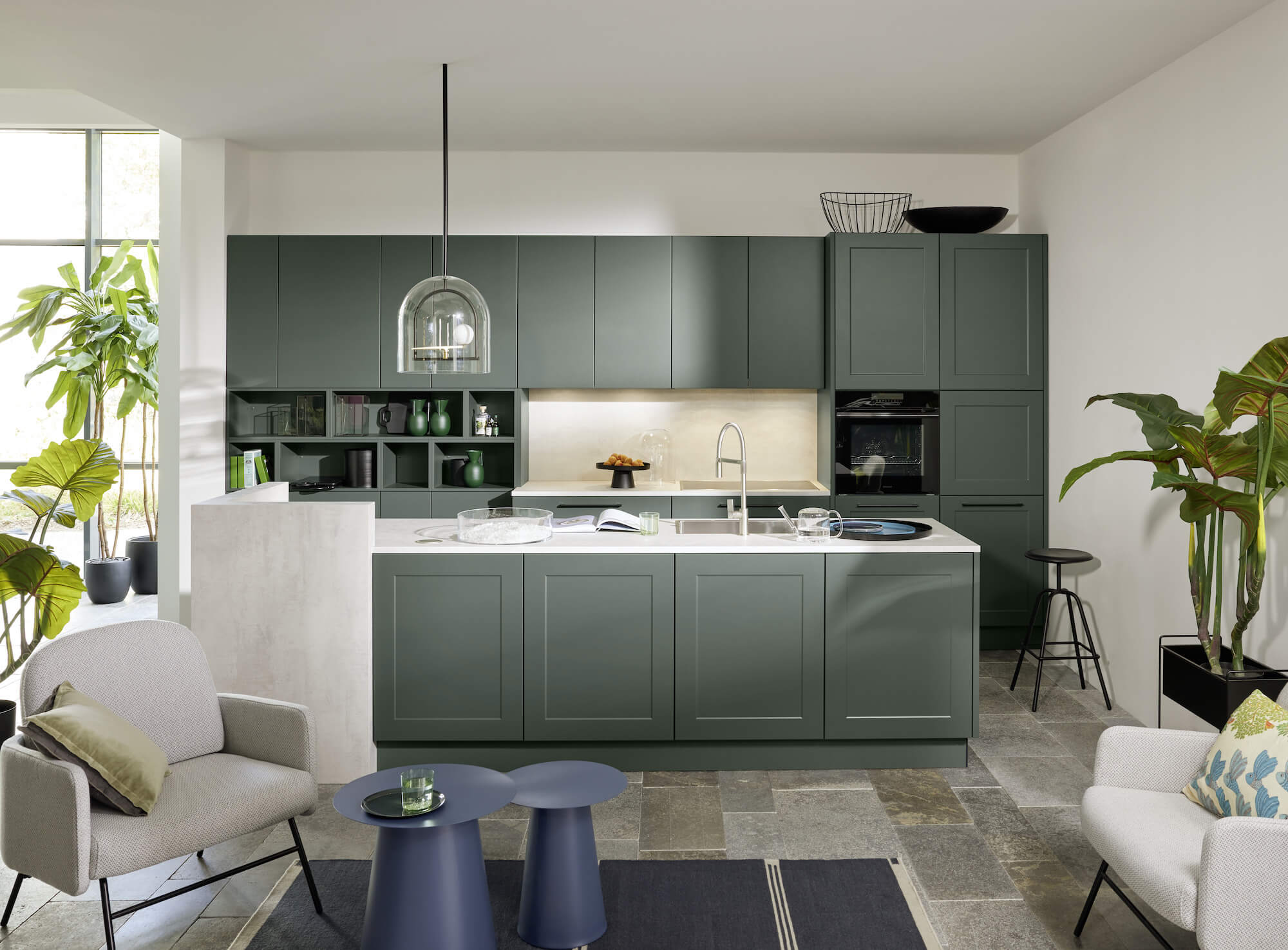 Die Auswahl an Materialien und Farben ist schier unendlich und bietet maximalen Gestaltungsspielraum. Lacke in matter oder Hochglanzoptik sowie Holzfurniere vervollständigen die vielfältige Designauswahl. Somit lässt sich die grifflose Küche an jeden Einrichtungsstil anpassen. Auch wenn grifflose Fronten besonders in Weiß und Hochglanz beliebt sind, kannst Du mit Deiner Küche auch einen Farbtupfer in Deinen vier Wänden setzen. Wie wäre es mit Jade, Burgund oder Kobaltblau? Farbige Küchen strahlen noch mehr, wenn sie mit kontrastreichen Materialien und szenischer Beleuchtung kombiniert werden. Doch auch dezente Farbnuancen wie Beige, Creme oder Sand vereint mit natürlichen Materialien wie Naturstein oder Holz in einer Art Ton in Ton Look können eine sehr edle Ästhetik erzeugen. Du hast die Wahl.