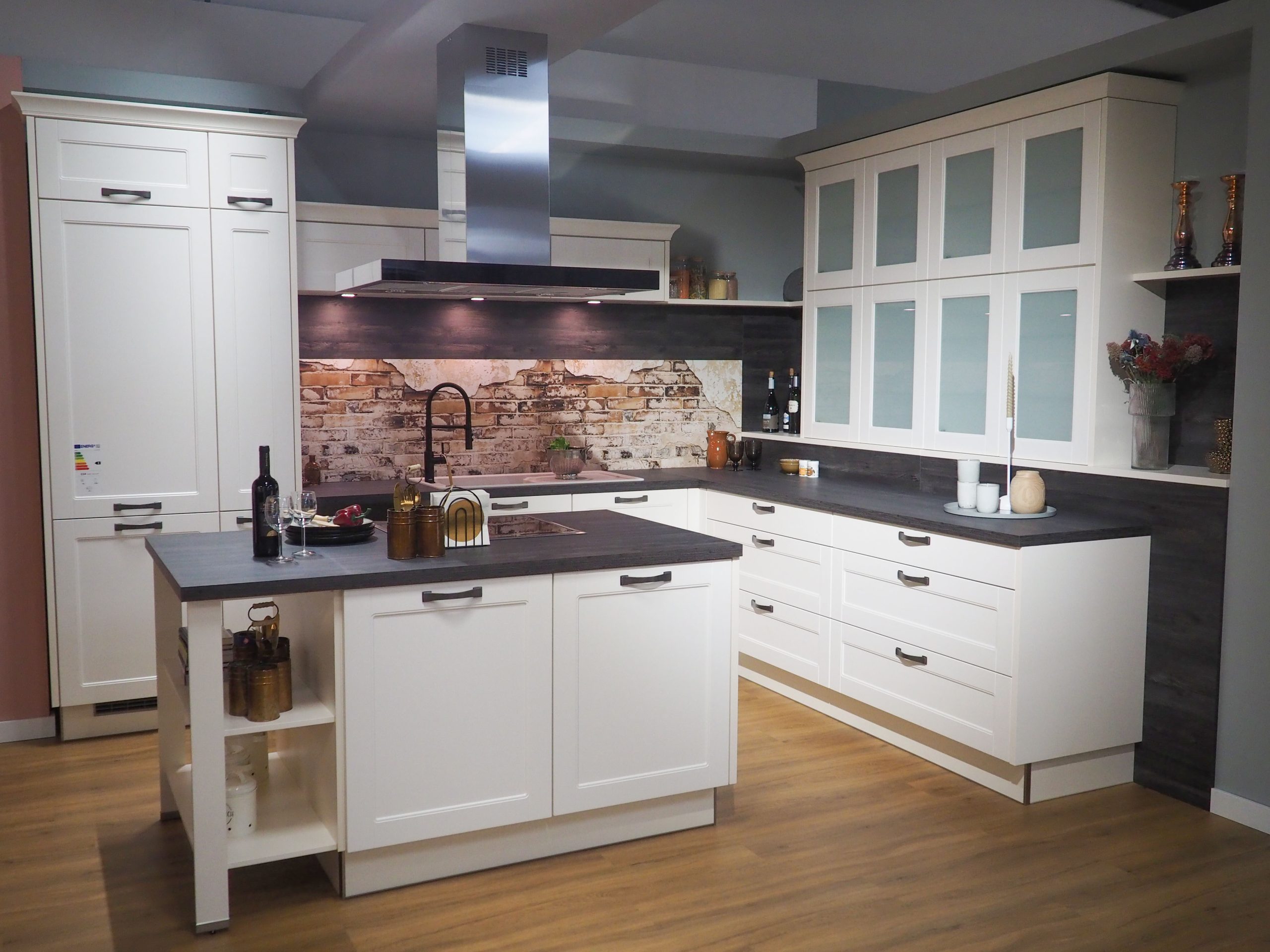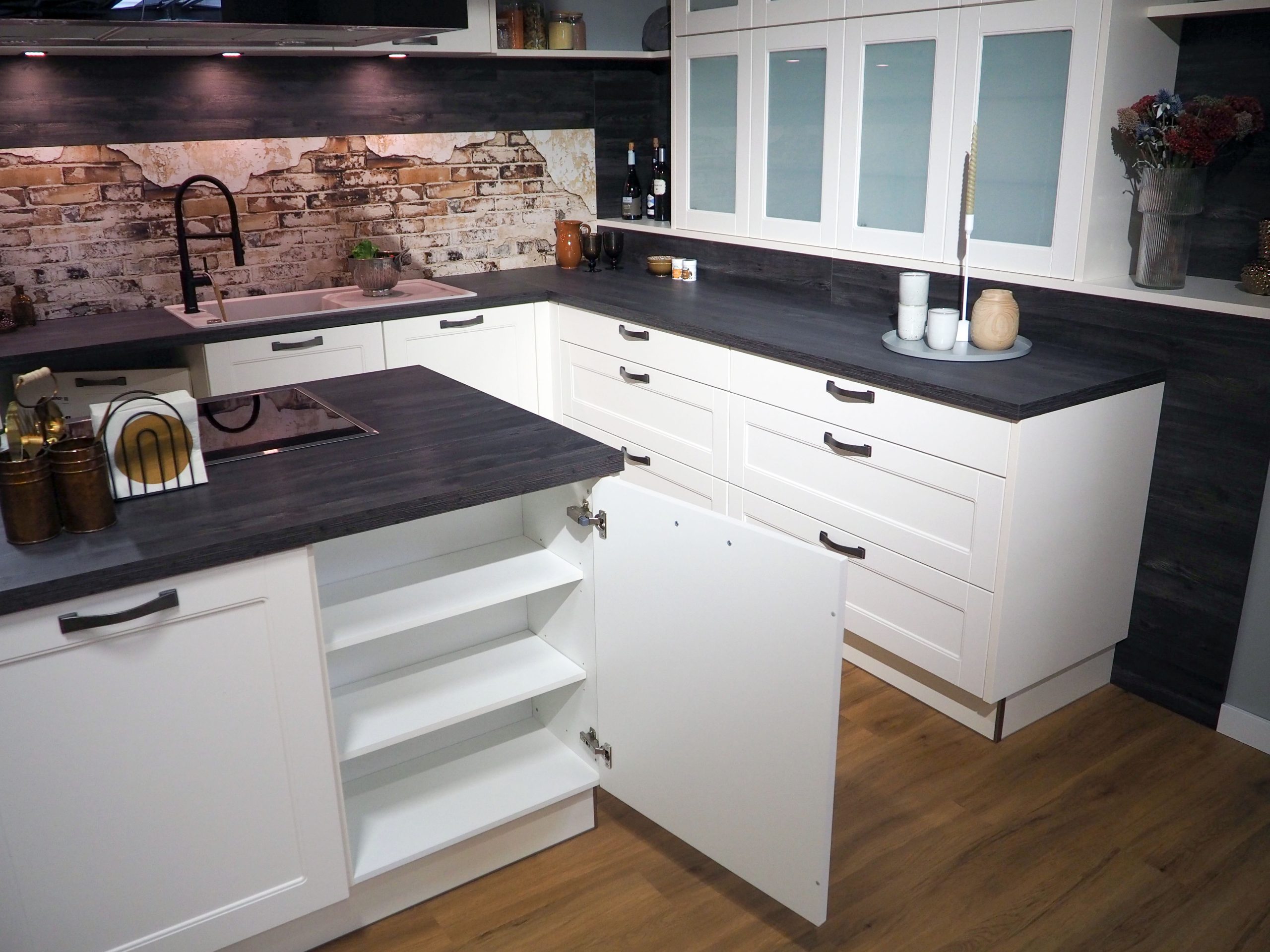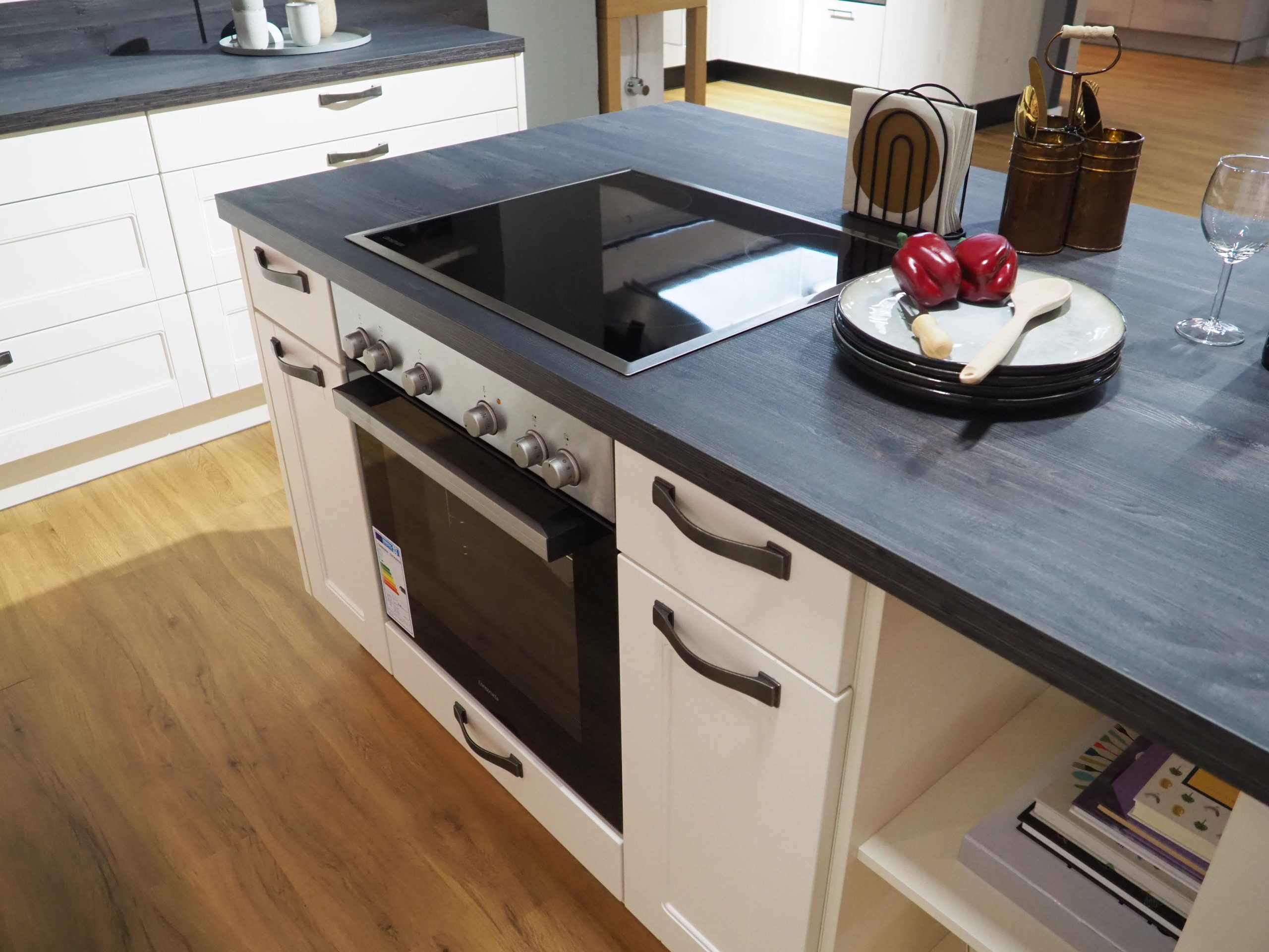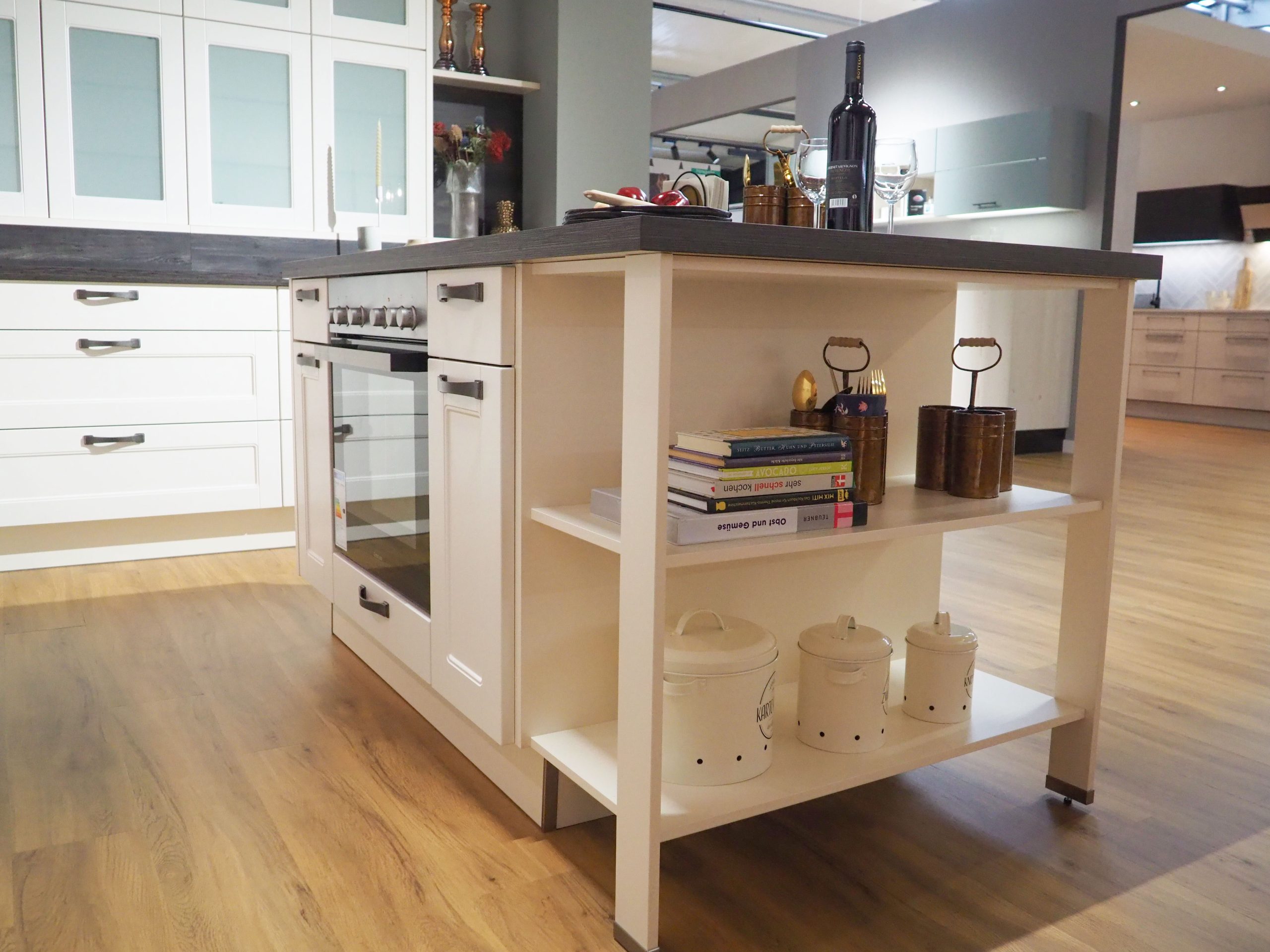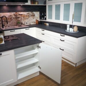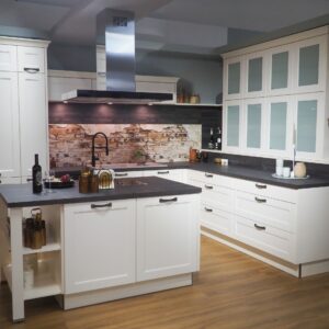 Wir machen mal wieder Platz für etwas Neues bei uns im Küchenstudio und verkaufen deshalb diese schöne Landhausküche in Magnolie zu einem unschlagbaren Preis! Die Küche umfasst: • Abzugshaube • Beleuchtung • Rückwand mit schönem Muster • Glasvitrinenschränke • große Kochinsel • Mülleimersystem • Waschbecken • zwei große Besteckkästen • u.v.m… ACHTUNG: ohne Herd, Kühlschrank Es handelt sich um eine Ausstellungsküche, somit können leichte Gebrauchsspuren/Kratzer vorhanden sein. Die Elektrogeräte sind neu & unbenutzt. Gekauft wie gesehen. Der Preis beträgt 5.900€ ohne Montage.
