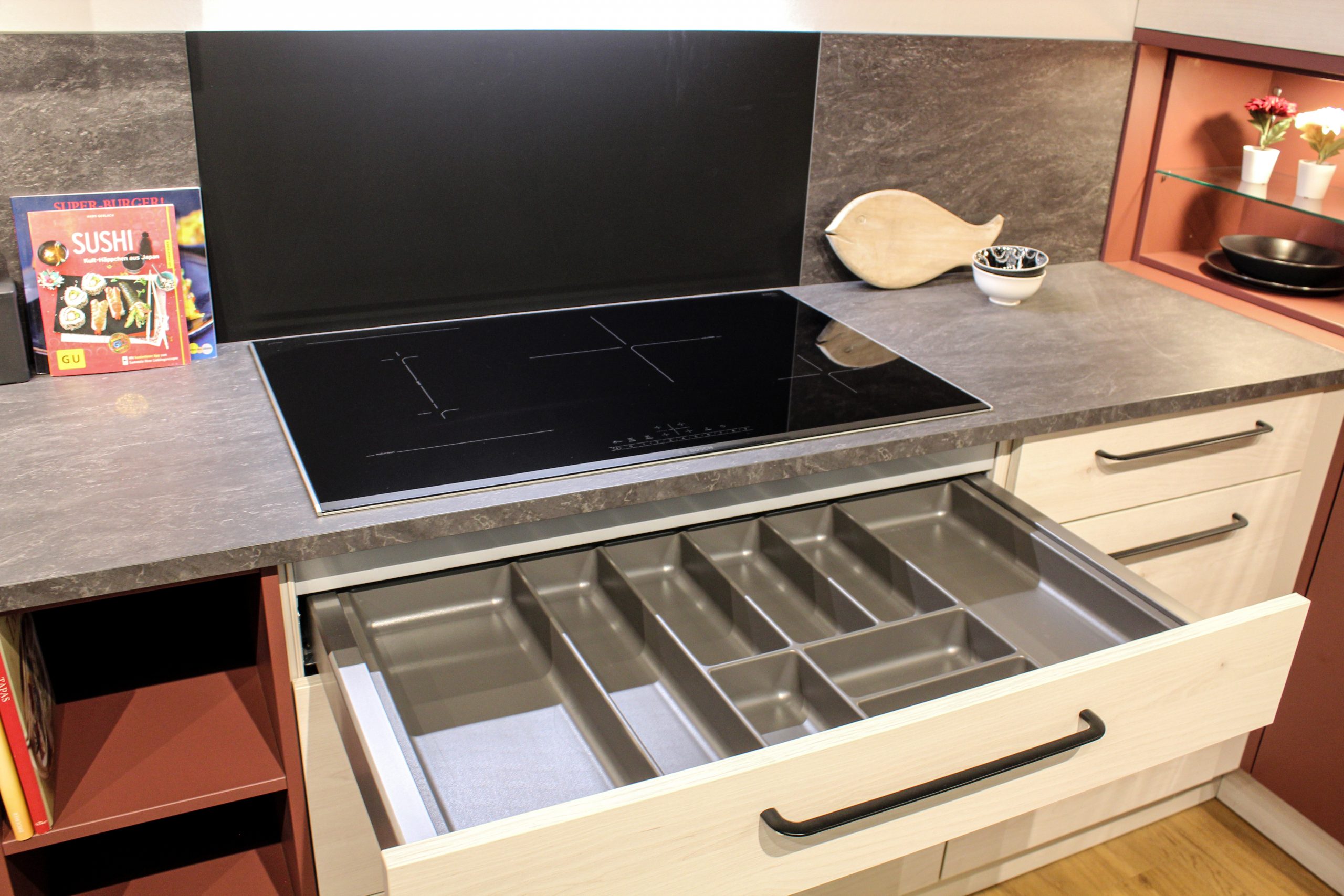Wir machen mal wieder Platz für etwas Neues bei uns im Küchenstudio und verkaufen deshalb diese schicke Nolte Küchenzeile zu einem unschlagbaren Preis! Die Nolteküche umfasst: NEFF Backofen, Miele Geschirrspülmaschine, Bosch Induktionskochfeld, Elica Kopffreihaube, Constructa Kühlschrank, Blanco Waschbecken & Armatur, Blanco Mülleimersystem, Blanco Spülbecken, integrierte, dimmbare Beleuchtung mit Funkfernbedienung, ausziehbarer Tisch, versteckt hinter einer Schublade, Regalsystem, u.v.m.. Der Originalpreis liegt bei 14.999€. Unser Abverkaufspreis beträgt 6.500€ Es handelt sich um eine Ausstellungsküche, somit können leichte Gebrauchsspuren/Kratzer vorhanden sein. Die Elektrogeräte sind neu & unbenutzt. Gekauft wie gesehen.