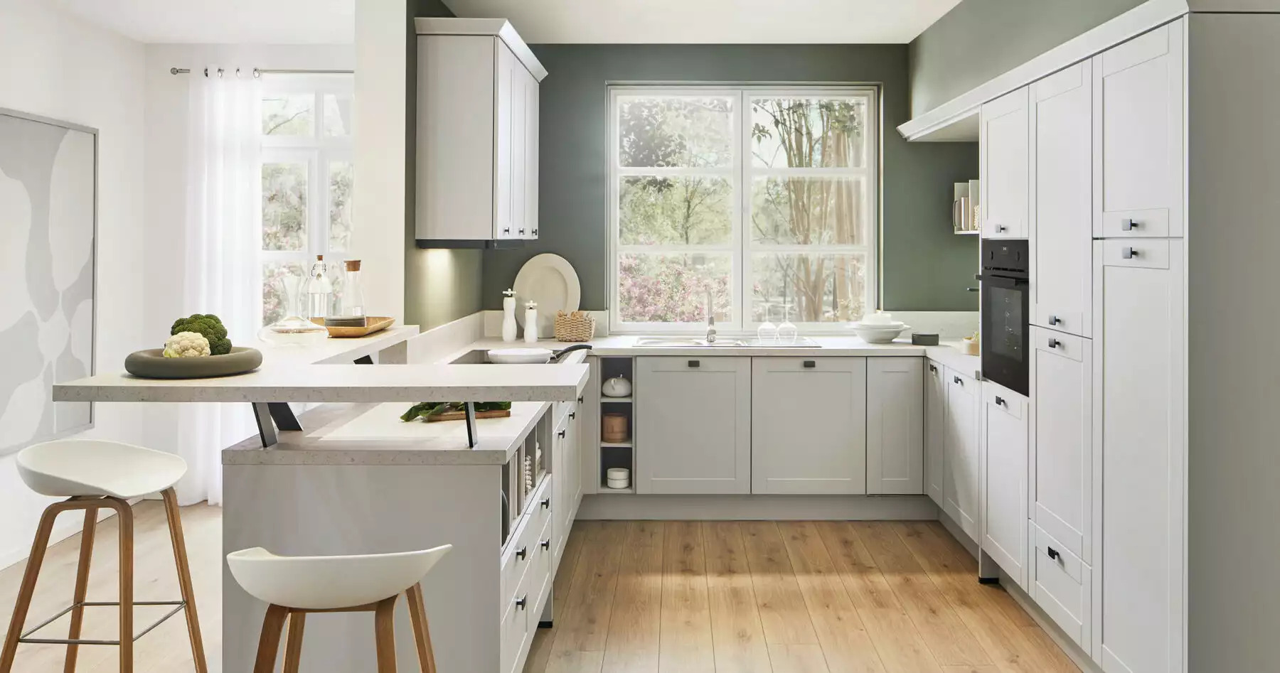 Pino moderne Landhausküche Lichtgrau mit Bartheke