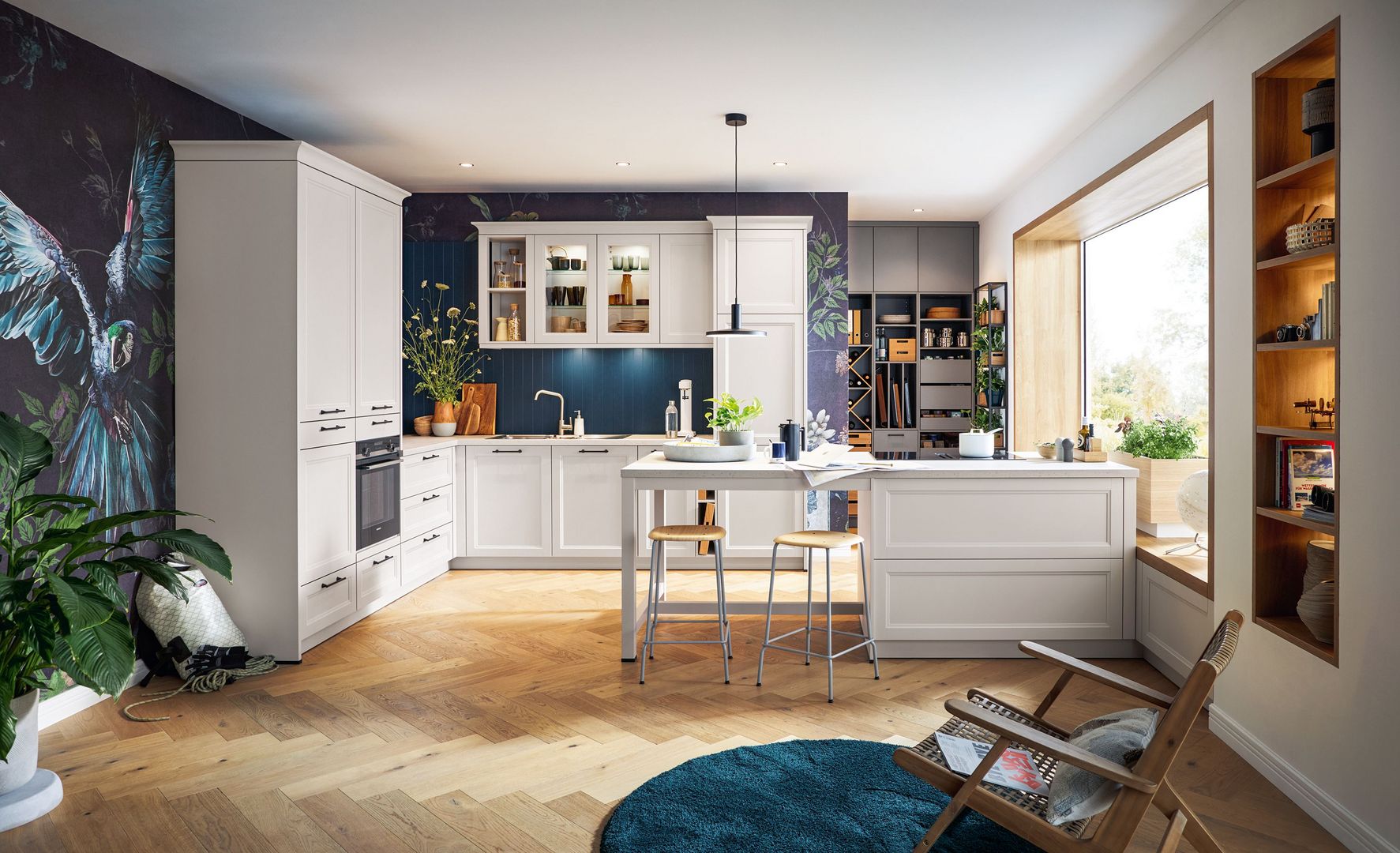 SCHÜLLER CAMEO LANDHAUSKÜCHE MIT INSEL MUSCHELWEIß
