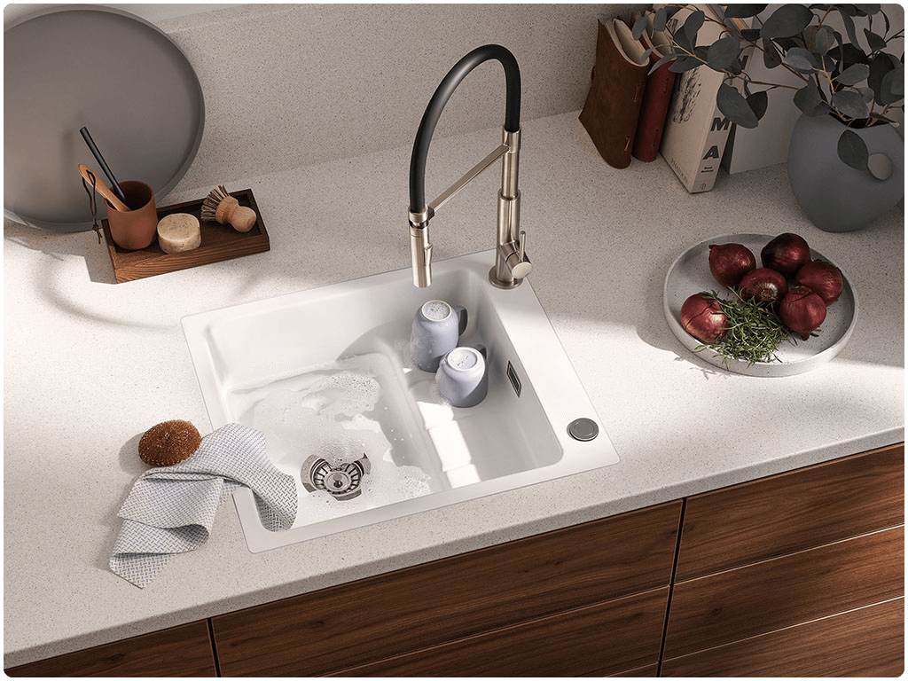 Die weltweit etablierte Premiummarke BLANCO bietet eine funktionale Produktpalette an Highend-Armaturen und Spülbecken. Auch Mülltrennsysteme gehören zum Sortiment des Herstellers. Beim deutschen Armaturenhersteller mit Sitz in Baden-Württemberg kommen umweltfreundliche Materialien zum Einsatz, die für Langlebigkeit und hochwertige Qualität stehen. Zudem sind die Armaturen mit einer Vielzahl an Funktionen ausgestattet wie Heißwasser, Filtersysteme oder Soda-Wasser – bei BLANCO findest Du das, was einen modernen Wasserplatz ausmacht.